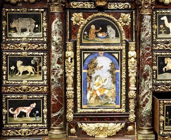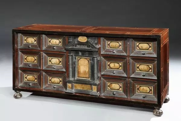 到16世紀(jì)的文藝復(fù)興時(shí)期,設(shè)計(jì)師們對(duì)精致的雕刻有著極大的追求,所以在材料上部分的放棄了粗粒度的橡木,并開始使用核桃木等低密度的材料,使得雕飾更加精細(xì)。這時(shí)候的雕刻更多的是關(guān)于神話、寓言和歷史題材,同時(shí)對(duì)稱和均衡是當(dāng)時(shí)的指導(dǎo)原則。家具的細(xì)節(jié)包括有藤蔓、花紋、渦卷、鮮花等,變得越來越復(fù)雜。同時(shí)那一時(shí)期還流行鑲嵌,材料多為象牙和骨頭,有時(shí)還用黃銅、鍍金等。