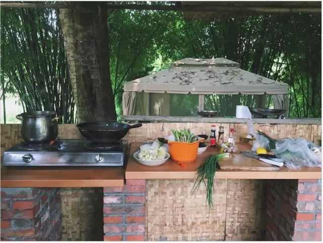 裝飾棚頂,堆砌灶臺(tái)吧臺(tái)
