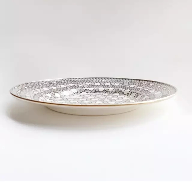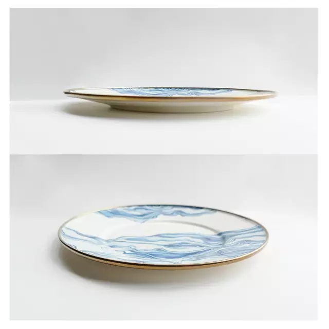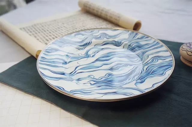 八寸淺口盤(pán),水波似的紋樣,在餐桌上,墻壁上肆意變幻,好像站在海邊。