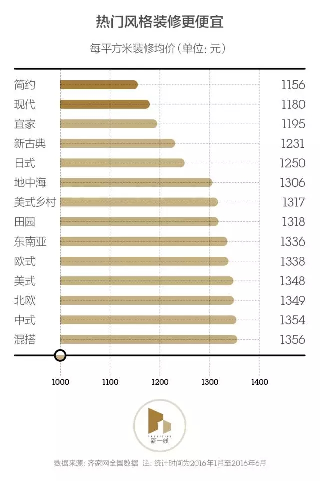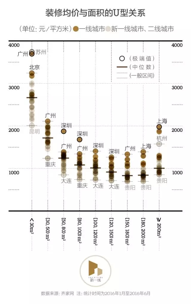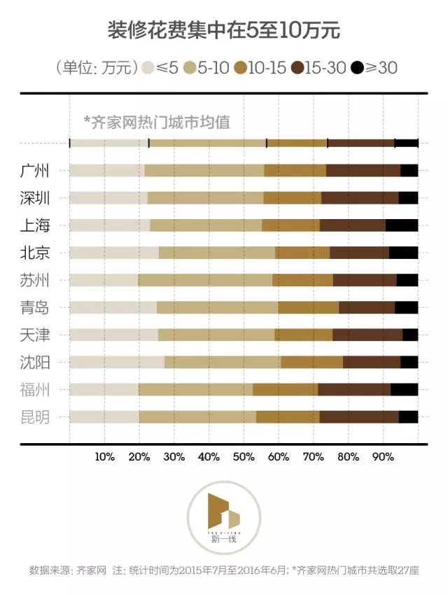 新一醬從互聯(lián)網(wǎng)家裝服務平臺齊家網(wǎng)那里要了一些數(shù)據(jù),想看一看裝修的差異到底有多大。然后就發(fā)現(xiàn),即使按照城市那么粗的顆粒度劃分,它們之間的差異也挺明顯的。