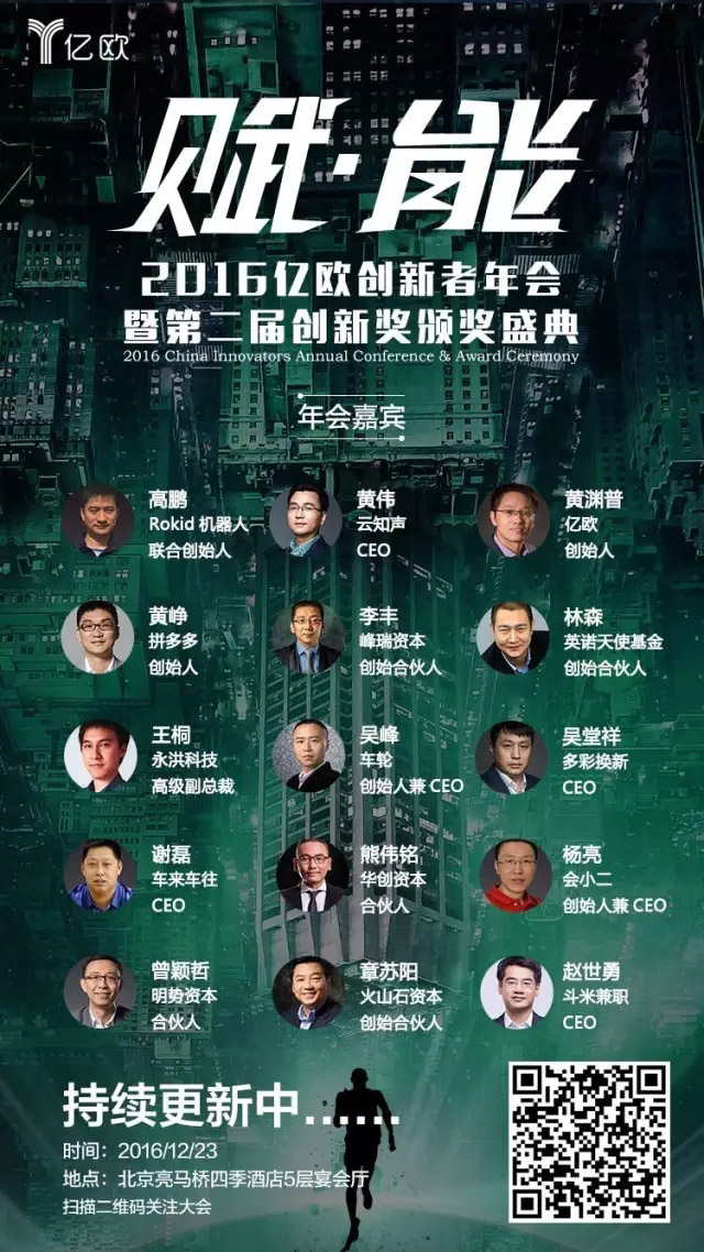 2016年最后一場行業(yè)盛會,第二屆創(chuàng)新獎評選再度來襲,12月23日,北京亮馬橋四季酒店,見證新資本、新產(chǎn)業(yè)、新技術、新理念帶來全新變革??萍假x能產(chǎn)業(yè),見證下一個商業(yè)風口!