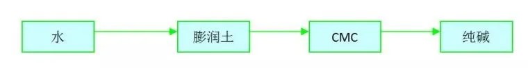 具體配制細(xì)節(jié):先配制CMC溶液靜置5小時(shí),按配合比在攪拌筒內(nèi)加水,加膨潤(rùn)土,攪拌3分鐘后,再加入CMC溶液。攪拌10分鐘,再加入純堿,攪拌均勻后,放入儲(chǔ)漿池內(nèi),待24小時(shí)后,膨潤(rùn)土顆粒充分水化膨脹,即可泵入循環(huán)池,以備使用。