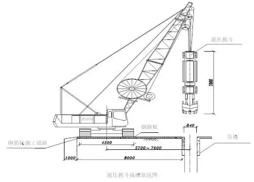 地下連續(xù)墻成槽(尤其是入巖部分)是控制工期的關(guān)鍵,其主要內(nèi)容為成槽機(jī)械的選擇,成槽工藝控制及預(yù)防槽壁坍塌的措施。