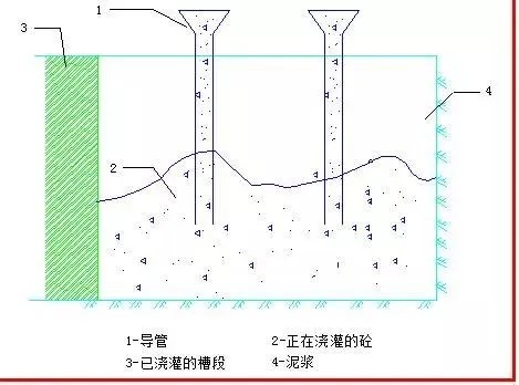 (6)灌注中嚴(yán)禁混凝土等雜物跌落槽內(nèi),污染泥漿,降低泥漿性能造成塌孔,增加灌注困難。