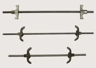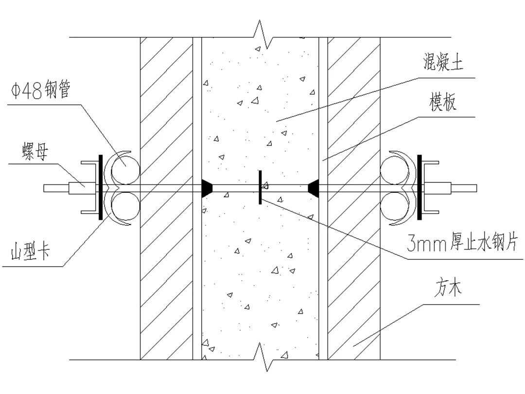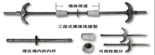 對(duì)拉螺桿多用于豎向構(gòu)件模板的加固桿件,另兩端均配設(shè)固定件(山形帽或成品鐵板墊塊)和螺帽限位,起到固定模板的效果。目前市場(chǎng)螺桿的種類繁雜,一般用于房建工程的螺桿均采用Q235的圓鋼進(jìn)行滾絲制作,直徑為M14(鋁模除外,其采用Tr18型),長(zhǎng)度根據(jù)相應(yīng)墻厚進(jìn)行配設(shè)。根據(jù)豎向結(jié)構(gòu)防水要求將螺桿主要分為通絲螺桿和止水螺桿。