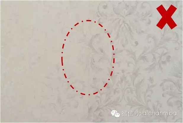 目測: 距離墻面1.5M處觀察壁紙,有嚴(yán)重色差,不合格。