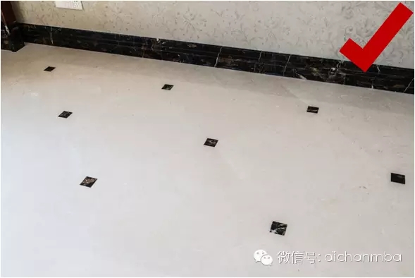 大理石踢腳線出墻厚度: 用直角檢測尺及卷尺檢查,出墻厚度與設(shè)計偏差≤2MM,合格。