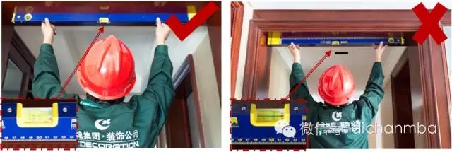 門窗套上口水平度:用1M水平檢測尺檢查,水平度誤差≤1MM,合格。