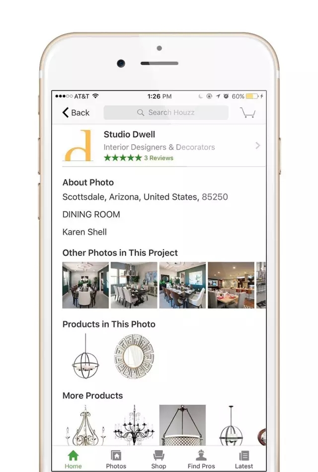 Houzz還有個很有趣的功能,就是可以把你想買的家具“放到”你家里試一試效果,比如這個燈~