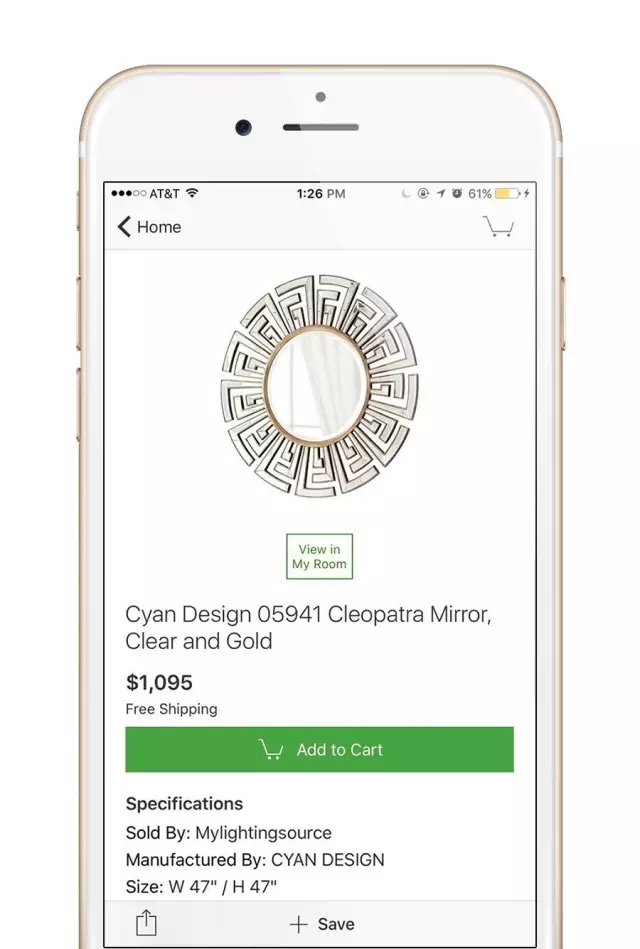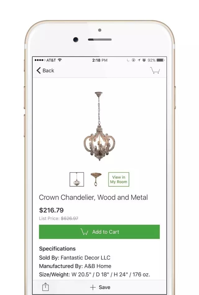 點擊“View in My Room”后,家具就會以插圖的形式呈現(xiàn),自動切換到相機,你可以挪動家具圖片的位置、改變它的大小,拍一張照,就可以看看這個家具在你想要的環(huán)境中的效果啦。