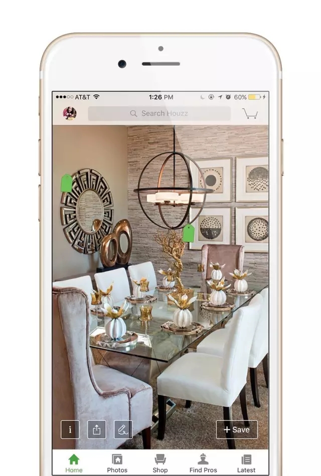 和Houzz類似的是,Zillow Digs也提供了場景式的購物方式,圖片中的小圓圈,都是可以通過平臺買到的商品。另外,Zillow Digs還有類似Pinterest的功能,看到喜歡的家裝案例圖,你可以“Dig it”,就相當于點贊,然后就保存到自己的收藏夾中了。