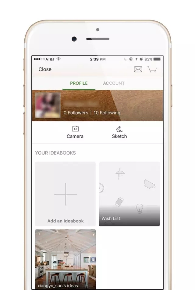 點擊主頁左上角自己的照片,就可以進入個人主頁。在這里你可以看到自己的心愿單、自己做的案例圖。