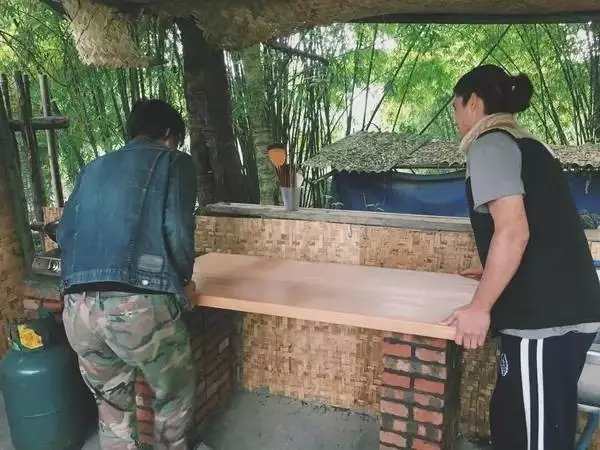 裝飾棚頂,堆砌灶臺吧臺