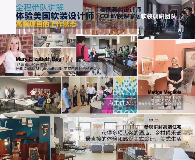 本次展會,將由北卡羅來納州商務(wù)部家具貿(mào)易出口部部長及品牌公司VP、擁有15年軟裝經(jīng)驗(yàn)的設(shè)計(jì)師和MBID國際公司創(chuàng)始人瑪麗·伊麗莎白·比爾(Mary Elizabeth Beal)帶領(lǐng)COHIM團(tuán)隊(duì),對全球頂級品牌的樣板間進(jìn)行專業(yè)講解。