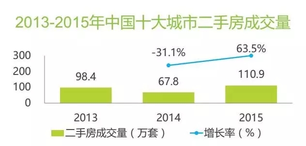 2014年我國商品房銷售額及銷售面積雙降,2015年市場剛需持續(xù),商品房銷售額同比增長14.4%,銷售面積增長6.5%,中國十大城市二手房成交量同比上升63.5%,新房及二手房銷售的剛需持續(xù),帶動(dòng)裝修市場增長。