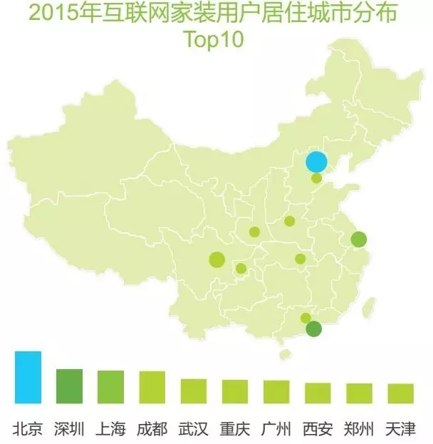 目前互聯(lián)網(wǎng)家裝用戶主要集中在一二線城市,其中北京、深圳、上海是互聯(lián)網(wǎng)家裝用戶數(shù)最多的城市。一二線城市人口比較密集,經(jīng)濟(jì)相對(duì)發(fā)達(dá),裝修需求交到;且一二線城市互聯(lián)網(wǎng)發(fā)達(dá),是互聯(lián)網(wǎng)家裝企業(yè)目前主要的發(fā)力市場。供需雙方共同拉動(dòng)了一二線城市互聯(lián)網(wǎng)家裝市場發(fā)展。