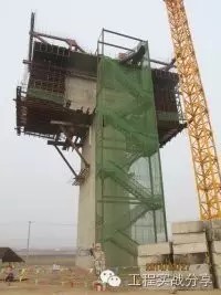 墩身混凝土的養(yǎng)護(hù)采取先在模板上包裹一層棉被,再在模板外自下而上搭設(shè)塔架,在塔架四周牢固圍護(hù)一層棉被和一層帆布,底部和頂部覆蓋密封保溫。夏季時(shí),在模板和塔架之間設(shè)置噴水系統(tǒng)進(jìn)行噴冷卻水降溫,使模板溫度和周?chē)鷾囟炔淮笥?0℃。拆模后采取噴涂養(yǎng)護(hù)劑和塑料布包裹覆蓋保溫聯(lián)合養(yǎng)護(hù)工藝,暴露于大氣中的新澆混凝土應(yīng)及時(shí)噴涂養(yǎng)護(hù)劑。并利用溫度自動(dòng)監(jiān)控儀對(duì)混凝土內(nèi)部溫度、養(yǎng)護(hù)溫度及環(huán)境溫度進(jìn)行全過(guò)程自動(dòng)報(bào)警監(jiān)控。-