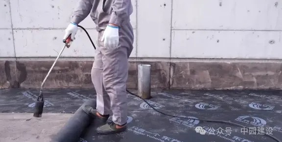 防水面層施工時,卷材搭接縫部位熱熔處理前,先將卷材表面的隔離層融化,搭接縫熱熔以溢出熱熔的改性瀝青為控制度,趁卷材尚未冷卻時,用小平鏟封刮接口,再用噴燈均勻細(xì)致密封。