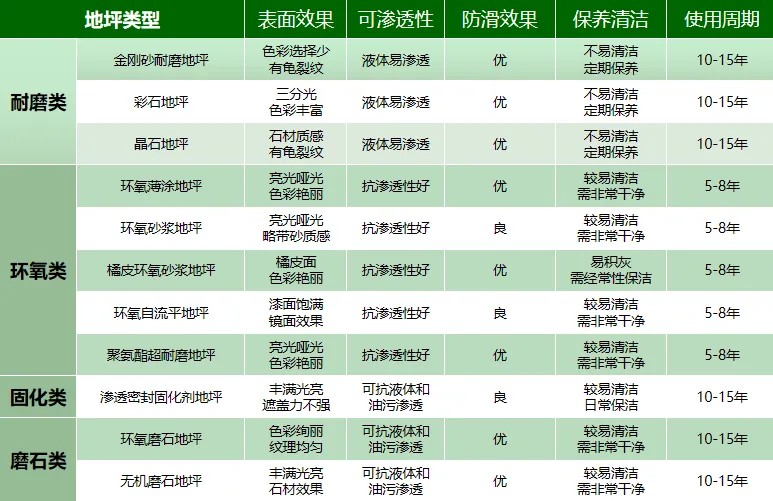 | 色彩表現(xiàn) | 環(huán)氧地坪 | 金剛砂地坪 |